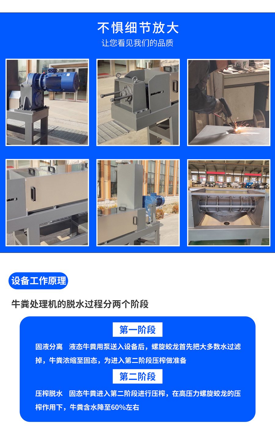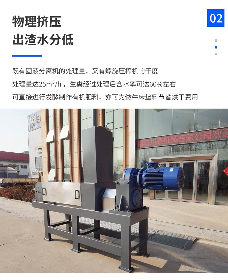 ?固液分離?:經(jīng)過預(yù)處理的牛糞進(jìn)入處理機(jī)主體后,會經(jīng)歷固液分離的過程。這一過程可能基于機(jī)械擠壓、旋轉(zhuǎn)篩網(wǎng)等多種原理,旨在將牛糞中的固體和液體成分有效分離。